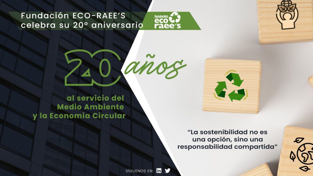 Fundación ECO-RAEE’S, Sistema Colectivo de Responsabilidad Ampliada del Productor de Aparatos Eléctricos y Electrónicos (SCRAP de RAEE), echa la vista atrás y hace balance de estos 20 años de trayectoria contribuyendo a la Economía Circular y la gestión de los residuos
