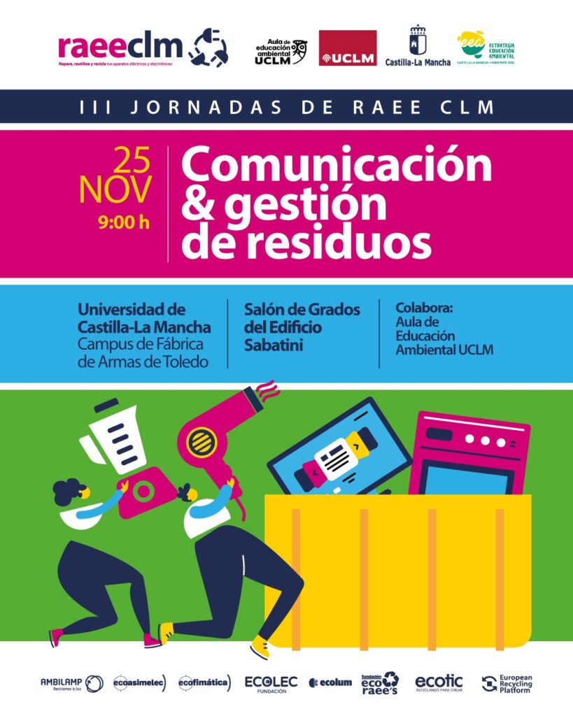 Las III Jornadas RAEE Castilla-La Mancha se celebrarán el 25 de noviembre en Toledo, en el Salón de Grados del Edificio Sabatini del Campus de la Fábrica de Armas de la Universidad de Castilla-La Mancha (UCLM).
